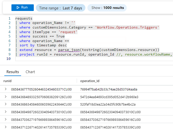 Most charts are based on Azure Metrics, requiring no user configuration. However, run details are not available in metrics, so we use Application Insights as the data source for these.