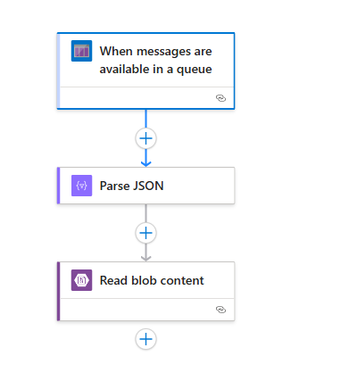 - Uses the “Get blob content” action (or equivalent) to retrieve and process the actual blob content from Azure Blob Storage