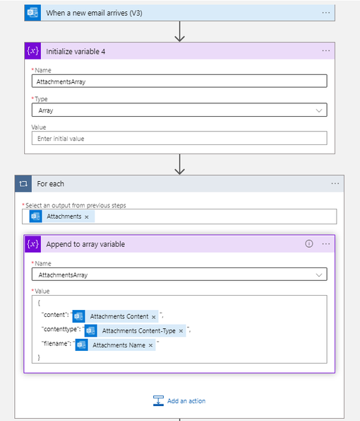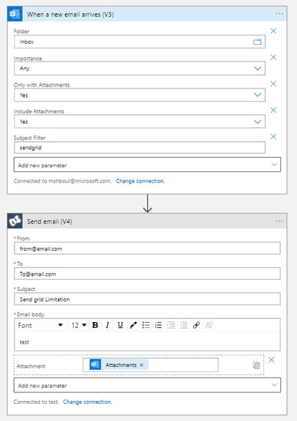 By this, we can send all received attachment (from the O365) to the Send Grid action; in one execution.