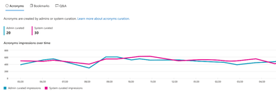 We also provide the system curated and admin curated acronym split for you to understand the value Microsoft Search provides through intelligent answer curation experience.