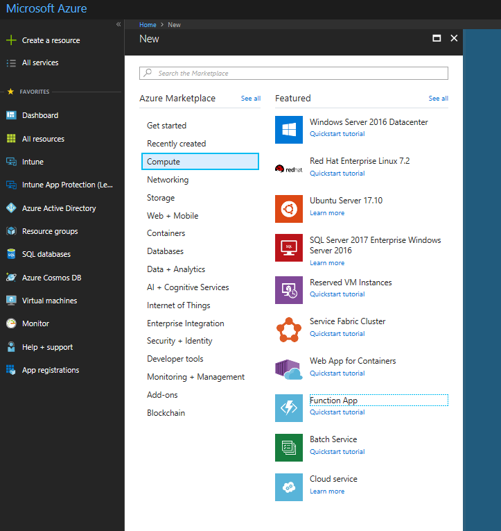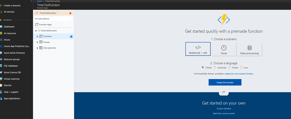 At portal.azure.com , go to Create a Resource >> Compute >> Function App