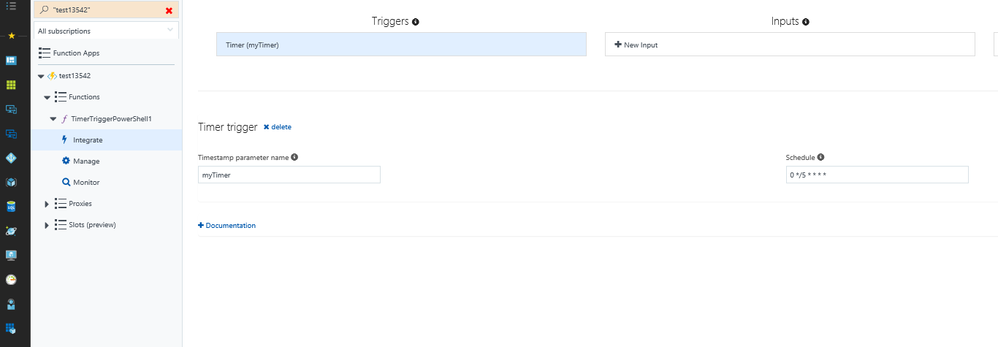 Expand the function and click Integrate to make any further changes to the timer schedule after you’ve created the function or any time in the future. Expand Documentation to see examples of different schedule expressions.