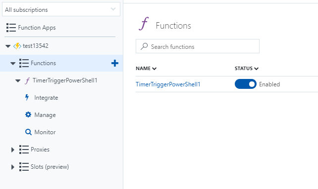 Now comes the time to make changes to your settings. Click on your function which is named TimerTriggerPowerShell1 in this screenshot.
