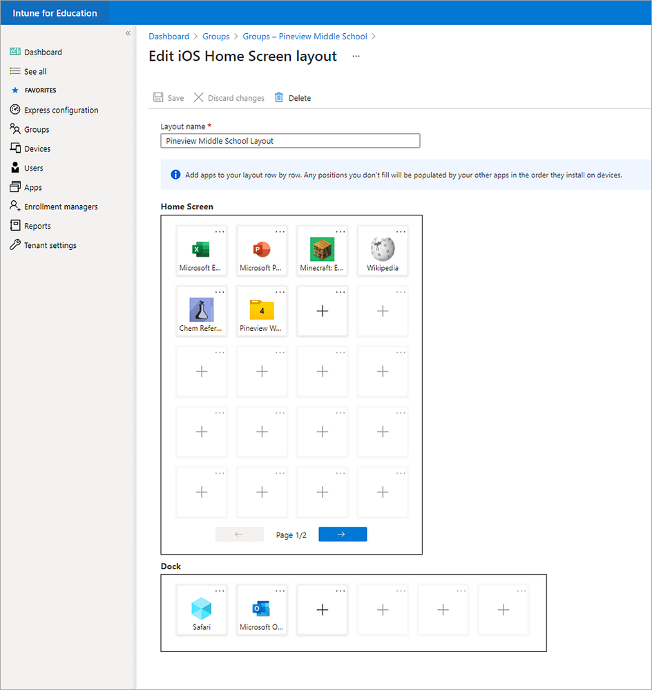 It’s critical that students can find the applications they need for school, and key to this is a device that offers a consistent experience from lock screen to wallpaper to home screen layout. Intune for Education allows administrators to organize and preview how apps (including web apps) and icons will appear on iOS devices.