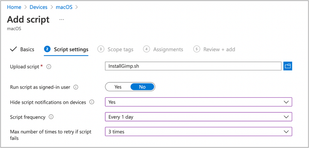 Step 4 - Deploy the bash script via the Intune scripting agent.