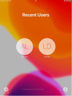 Once iPads are enrolled and functional, users will be able to setup their profiles, where they’ll have access to the applications and data according to their permissions. Once their profiles are setup, users can see them in the login screen, as they will be available for them to login again in the future.
