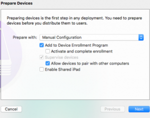 Click on Prepare - Select Manual Configuration - Add to Device Enrollment Program - Next. All other settings are optional