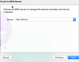 - In Define an MDM Server dialog box , Enter Name and URL , and click on Next
