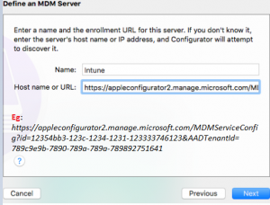 URL: https://appleconfigurator2.manage.microsoft.com/MDMServiceConfig?id=<Intune_tenant_ID>&AADTenantId=<AAD_tenant_ID>