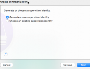 In Create an Organization dialog box, select Generate a new supervision identity and click on Next
