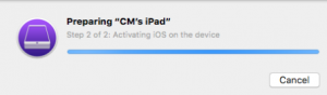Note: If Activation Lock was not turned off, Apple Configurator will throw an error at this stage saying, "The device may be activation locked". In the test I performed it failed once as device was locked. I had to unlock it and go through the entire process again.