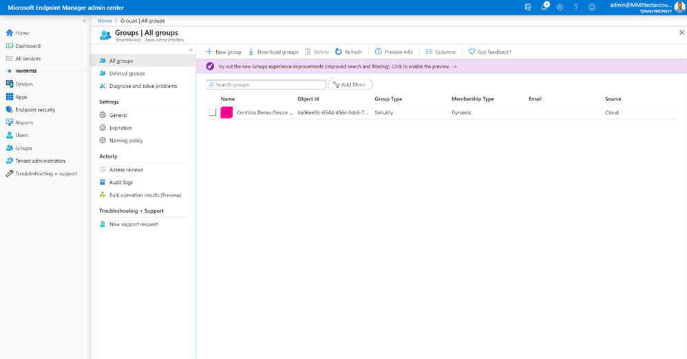 Save the query and return the New group page. Review your group’s properties and click Create when you’re ready. Confirm your device group was created in the All groups page.
