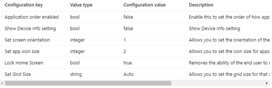 07/29/20: Updated the chart to include new device configuration support for a number of Managed Home Screen items.