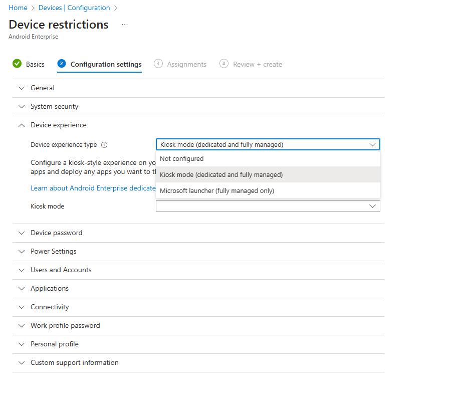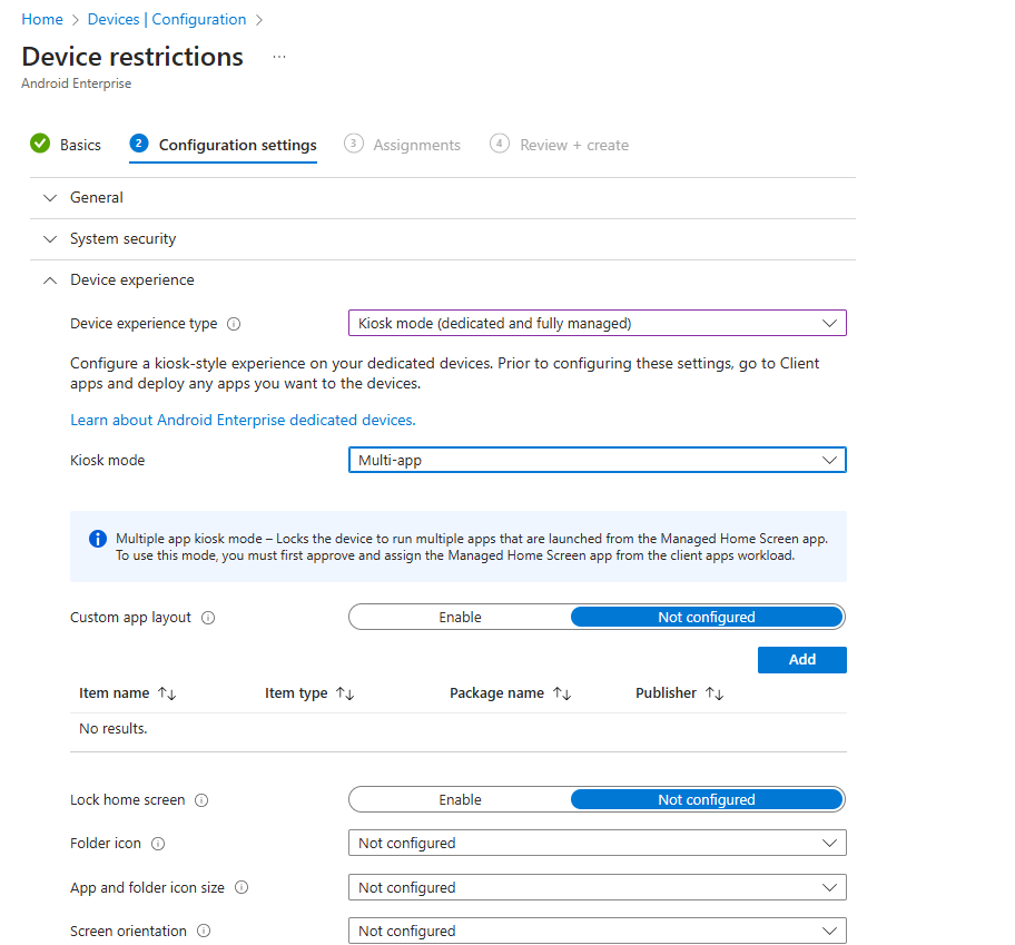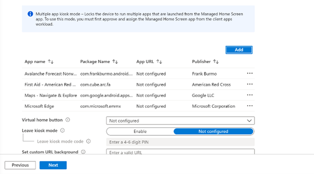 How to setup Microsoft Managed Home Screen in kiosk mode on Dedicated and Fully managed devices