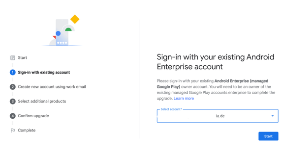The Google Admin console wizard will guide you through the steps to create and set up your Google Admin account and allow Intune to manage your Android Enterprise devices.