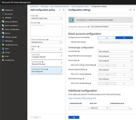 At Microsoft Ignite, Outlook for iOS and Android announced support for deploying managed device general app configuration settings for Office 365 mailboxes and on-premises mailboxes leveraging hybrid...