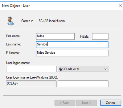 Before we install the NDES server, we first need to create a new service account in your Active Directory domain using Active Directory Users and Computers. This is the account that will be used to request the SCEP certificate from your Enterprise Certification Authority (CA).