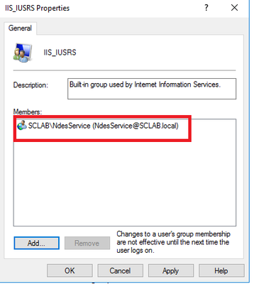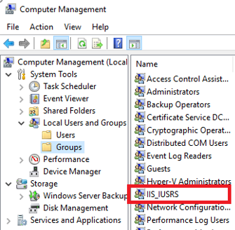 Once the account is created, go to the computer you want to use for the NDES role and run compmgmt.msc (Note that the NDES computer should be running Windows Server 2012 R2 or later). Add the newly created account into the local group IIS_IUSRS: