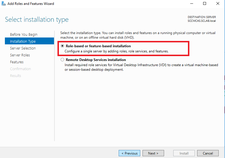 Copy the file to your NDES server and start the installation with Administrative rights. When the wizard starts, first select the option below: