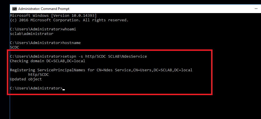 Now we need to set the SPN for the NDES service account. Logon to your NDES server, open command prompt, then run the command below:
