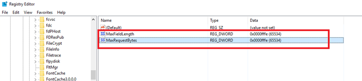 Next, launch Registry Editor (regedit) and go to HKLM\SYSTEM\CurrentControlSet\Services\HTTP\Parameters, then edit the values as shown here: