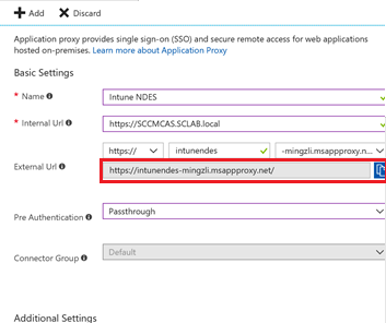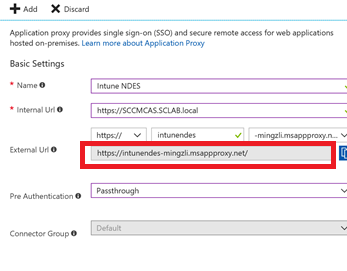 As a next step, we need publish your NDES server to the Internet and generate an external FQDN. In this article we do this using Azure Application Proxy, however you can achieve the same by using the Windows Application Proxy (WAP).