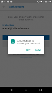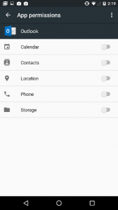 Providing access to your contacts allows the app to communicate with the Company Portal, which is required to ensure your device is enrolled and compliant with your organization’s policies. This lies outside of Outlook and the Company Portal and is due to a change in how Android apps handle application permissions (you may have noticed a change in how permissions are granted for apps starting in Android 6.0, click here for more information).