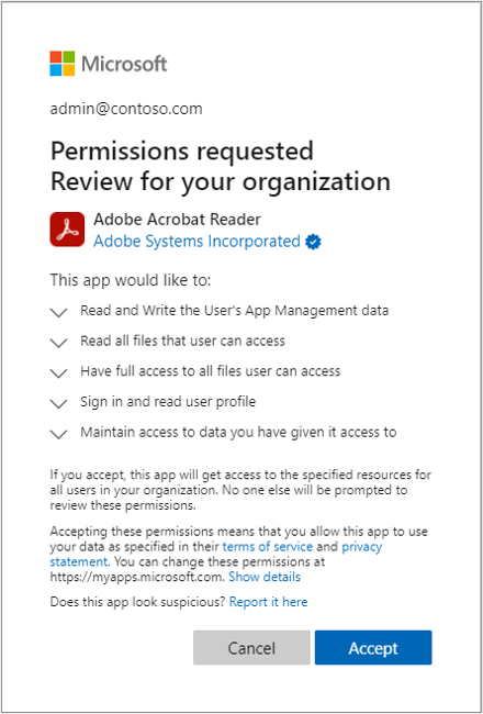 Permissions requested - Review for your organization | Adobe Acrobat Reader