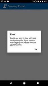 Intune has received reports of Android end users who are seeing failures when signing into the Intune Android Company Portal app.  Affected users see this error after entering their username: