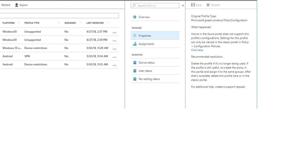 We are introducing a report in Azure that will show you your unhealthy configuration policies. We expect that report to be available in the first half of June. Once the report is live, we’ll add screen shots to this post. Here's a screen shot of the report showing unhealthy configuration policies: