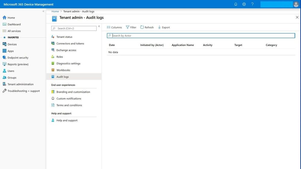 In the Microsoft Device Management or Microsoft Endpoint Manager console, Audit logs will now be consolidated in the Tenant administration blade.