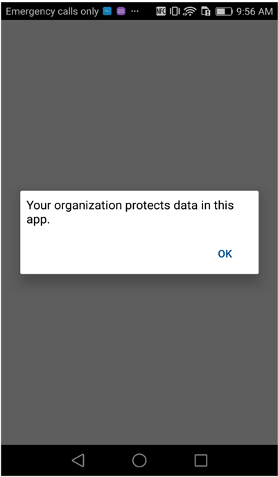 With the older Android Company Portal, when users first signed into a protected app, they saw this dialog message: