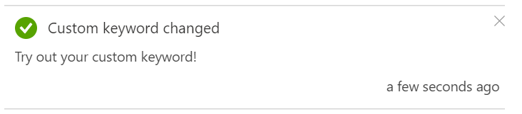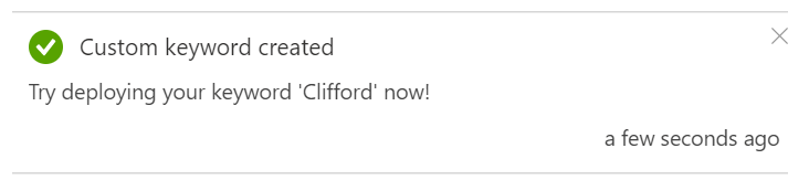 Pressing the “Create Custom Keyword” button in the toolbar at the top of the page allows us to configure and train our own custom keyword;