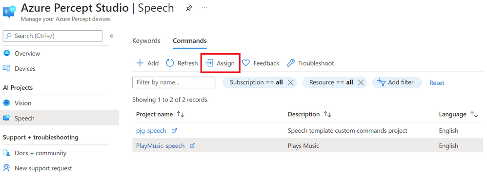 Another way to access the Custom Speech Projects associated with our Percept is to use Azure Percept Studio.