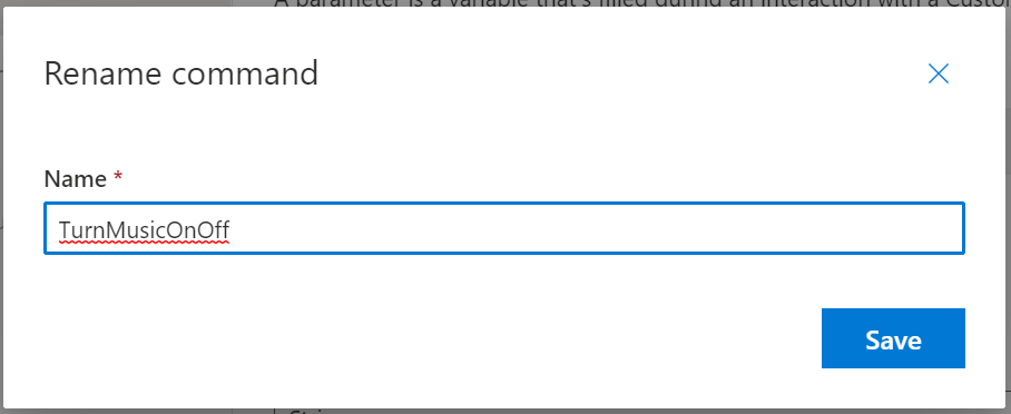 We can then give our Command a name of “TurnMusicOnOff”;
