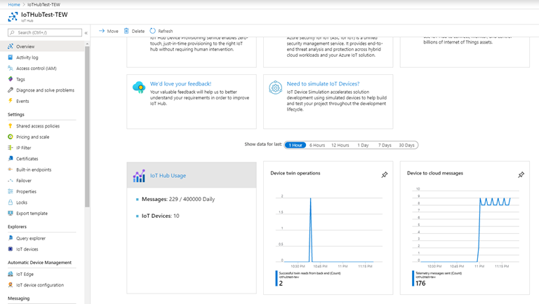 Last thing I will do is go to the Azure portal and show that the ESP32 sensor data is indeed coming into my Azure IoT Hub and and with the route I configured; it is being sent into data storage.