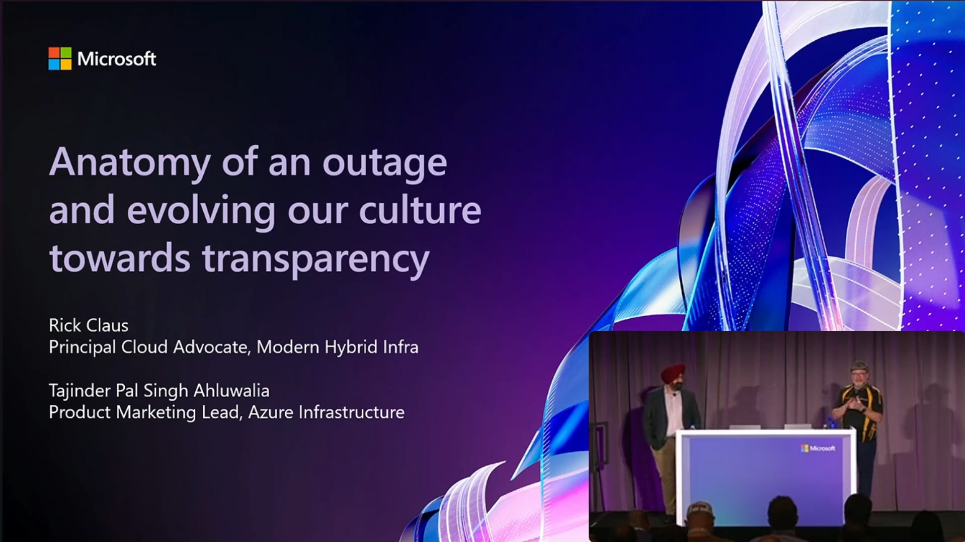 Outages happen—no matter the hyperscale provider, no matter the architecture. What separates resilient organizations from the rest is how quickly they detect issues, how effectively they communicate, and how well they learn from the inevitable. I had the opportunity to co-present a session on the topic of how Microsoft communicates during outages and what YOU can do to be more proactive on how your Azure based infra is weathering the storm. Tajinder Pal Singh Ahluwalia and I pulled back the curtain on how Microsoft handles major incidents—from the first customer impact signal to the deep‑dive retrospectives that follow. Our session, “Anatomy of an outage and evolving our culture towards transparency,” was an updated version of a popular session from previous Microsoft Ignites that offered crucial lessons for infrastructure teams everywhere.