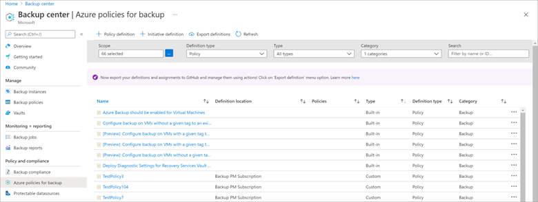 - Azure Policy built-in definitions for Azure Backup