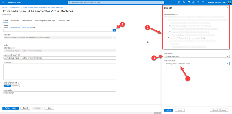 Because ABC integrates so well with Azure Policy you can define and assign different policy to different scopes. When going through the assignment process, you’ll be able to: