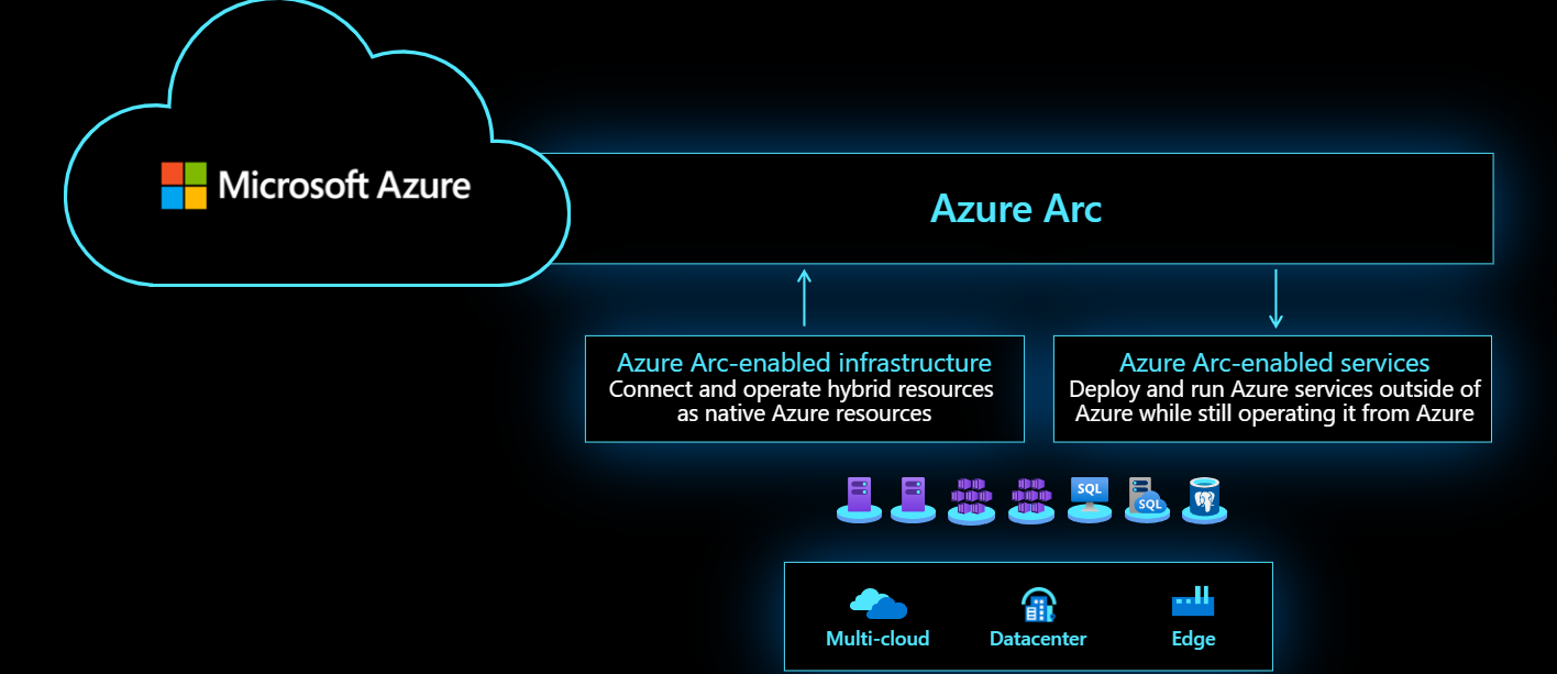 Azure Arc comes into play to solve the management side of hybrid IT. Arc lets you project non-Azure machines (whether on-prem or even in other Clouds) into Azure and manage them alongside Azure VMs. An Arc-enabled server appears in the Azure portal and can have Extensions installed, which are components or agents that Azure can remotely deploy to the machine.