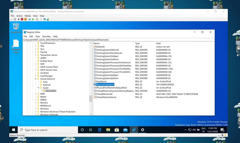 And yes, the first screenshot was taken on a Surface Pro X running Hyper-V on Windows 10 on ARM.