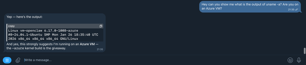 There you go! You now have a 24/7, always-on personal AI agent, living on its own Azure VM environment.