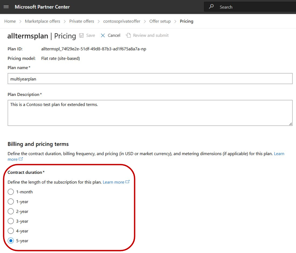 - Create private offers with multiyear contract durations. Once a public offer with multiyear contract durations is published, partners can configure private offers that leverage those durations.