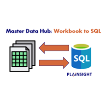 Master Data Hub: Workbook to SQL: Plainsight's Master Data Hub connects Microsoft Excel to Azure SQL databases, allowing users to submit, update, and delete data directly from their spreadsheets. It enforces data quality checks, provides full change tracking, and includes auditability. Teams benefit from faster cycles, lower risk, and no coding required for data management. | |