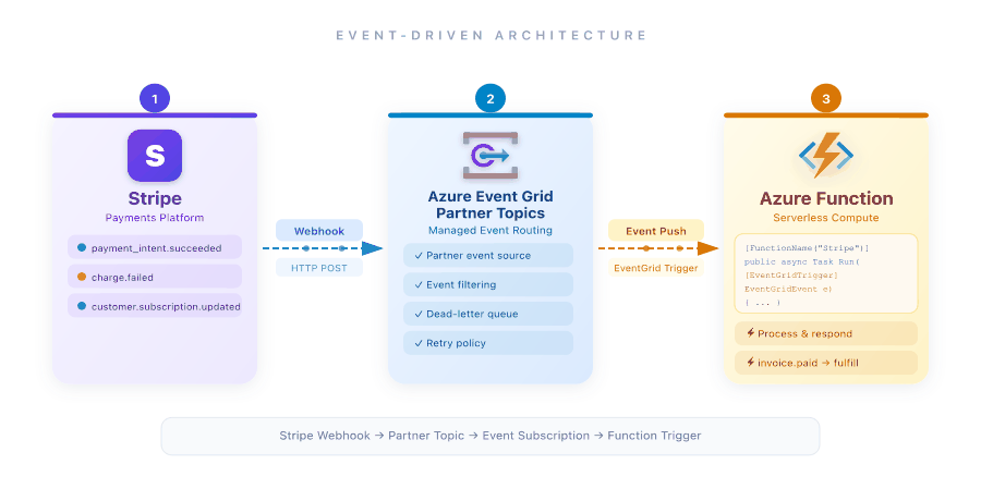 Build scalable, secure, and real time payment workflows on Azure using Stripe events and Azure Event Grid.
