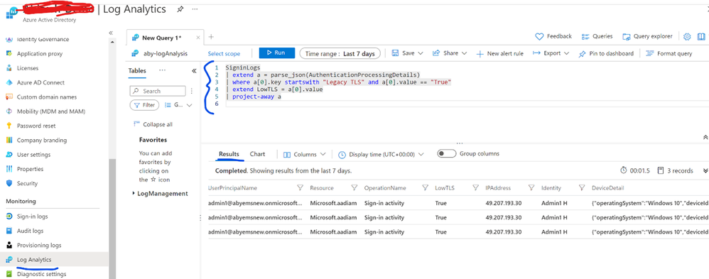 Using Azure AD sign in logs to detect legacy TLS & plan transition
