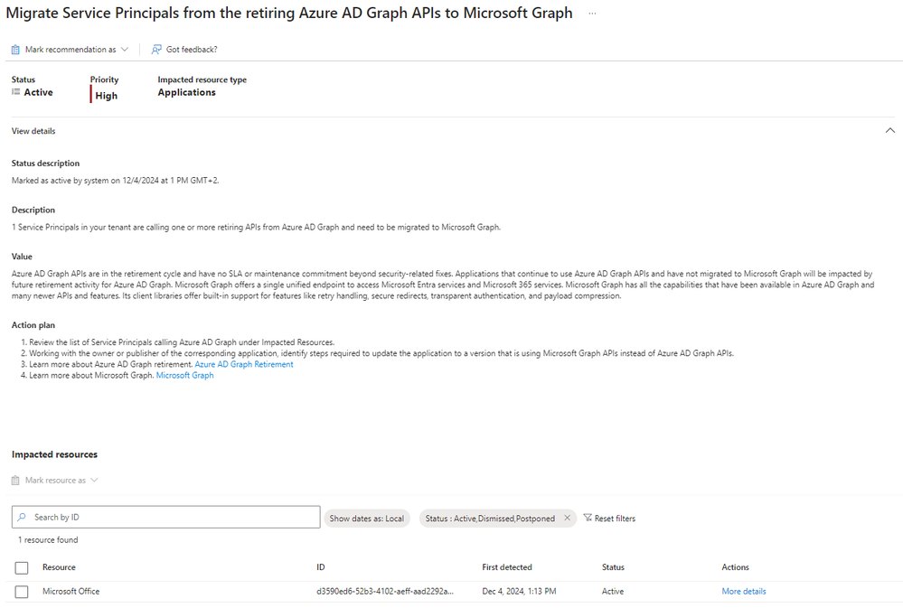 I also have a report of App Registrations from ENOW which shows a few app registrations and this tenant does not even have the Microsoft "Migrate Applications from the retiring Azure AD Graph APIs to Microsoft Graph". So hard to trust these recommendations!