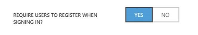 Answer: If your users frequently sign in to web apps, like Exchange Online, SharePoint, or an integrated SaaS application such as Salesforce or Workday, then your best bet is to use the password reset "Enforced Registration" feature . To turn this on, just go to the Azure Management portal, click on your directory, and on the "configure" tab, make sure the "Require users to register when signing in?" toggle is set to "yes".