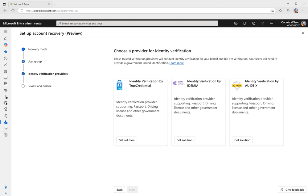 Figure 3: Select and configure Identity verification providers for account recovery.