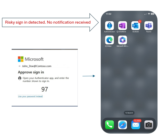 But in the event of a login request that looks risky to us, the standard notification will not be sent to the user. Instead, they’ll be given the following instructions: “Open your Authenticator app and enter the number shown to sign in,” with no corresponding notification displayed on the user's phone.